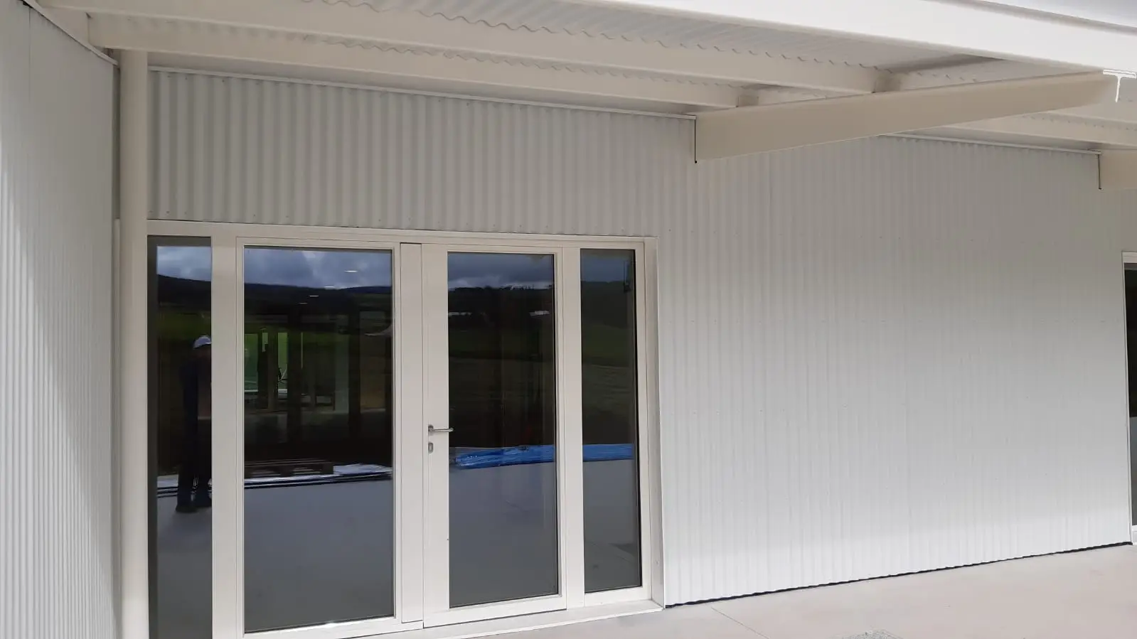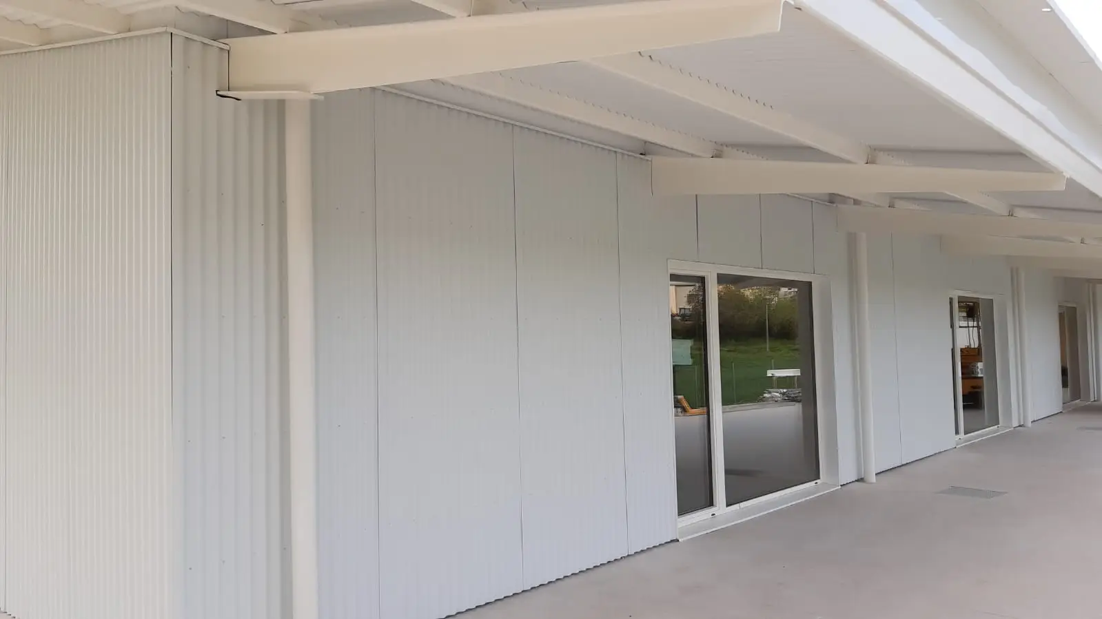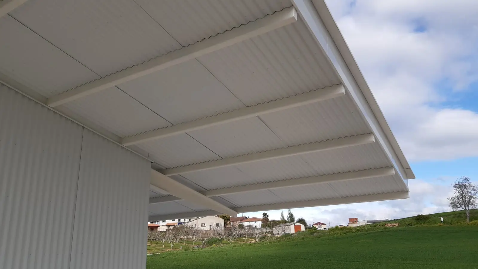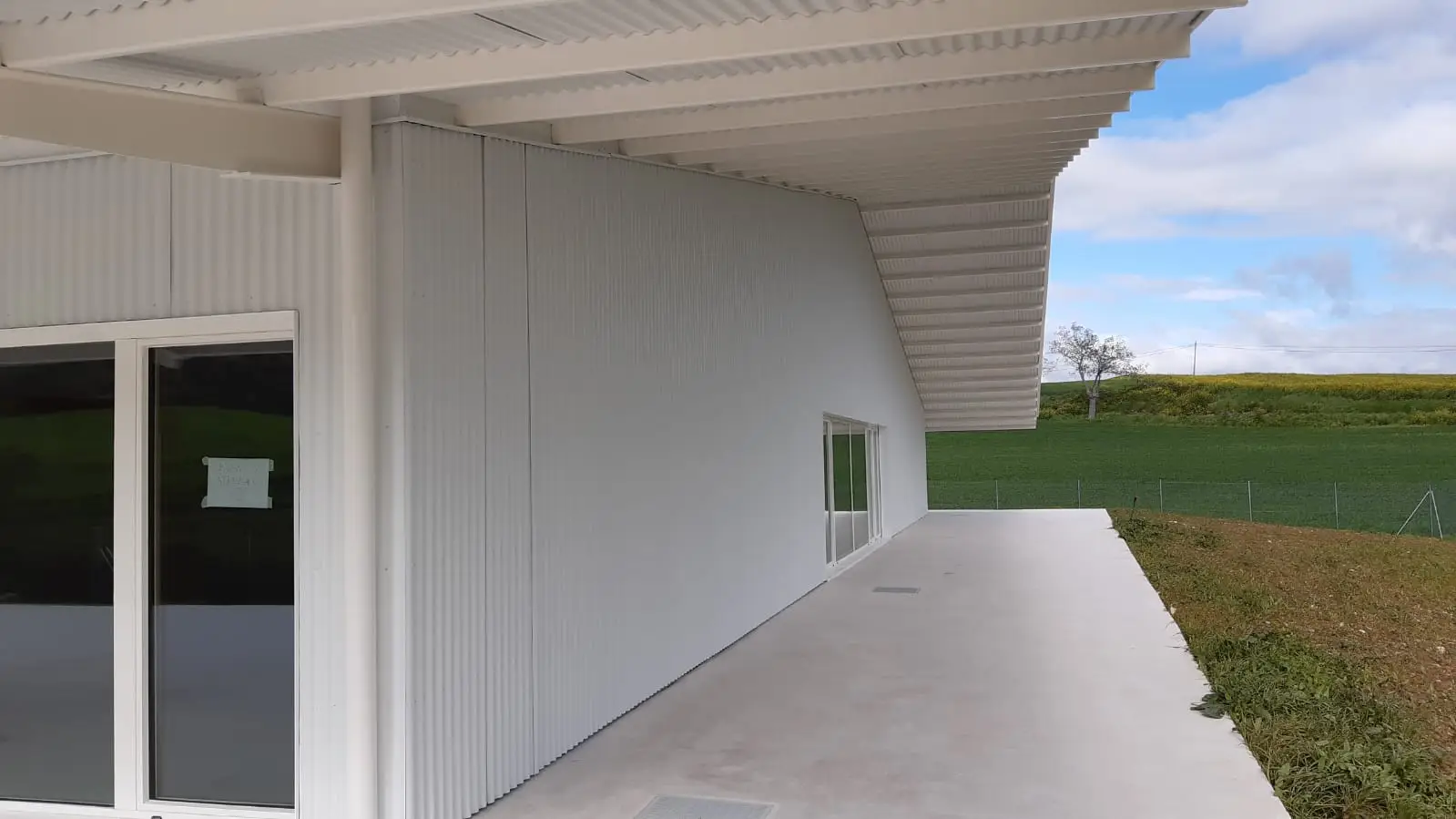 El uso en toda la envolvente y el tejado de chapa minionda en aluminio le proporciona el aspecto estético buscado, pero aparte, está dotando a la edificación de un alto nivel de calidad constructiva.